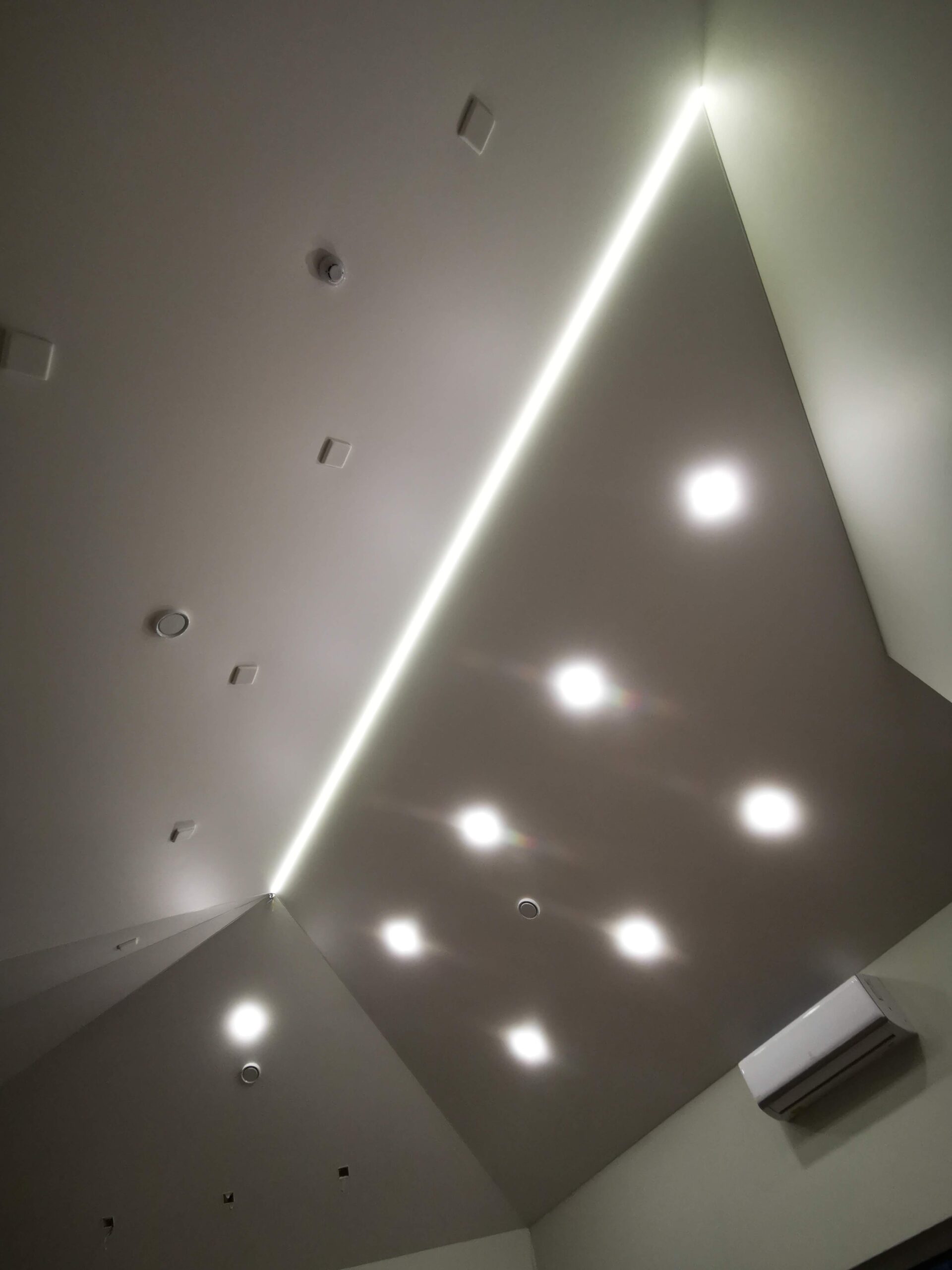Salionuose pritaikius skoningą apšvietimą žiūrisi tiesiog tobulai. Nepriekaištingas lubų lygumas. Ant esamų, senų lubų lengva suprojektuoti pagal zonas patinkantį, patogų, ekonominį apšvietimą.